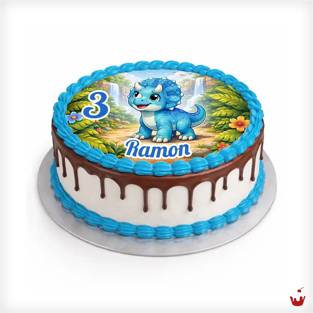 Diese Triceratops Dino Fototorte ist ideal für kleine Dinosaurier-Fans und wird ganz nach Ihren Wünschen gestaltet. Das niedliche Dino-Motiv des essbaren Tortenauflegers bleibt fest erhalten und sorgt für einen farbenfrohen Blickfang auf jeder Geburtstagstafel. Alles Weitere stellen Sie individuell zusammen.